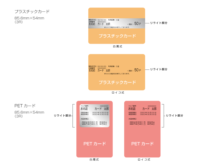 PVC(塩ビ)、PET-G(エコ向け樹脂)の2タイプからなるカード製品です。